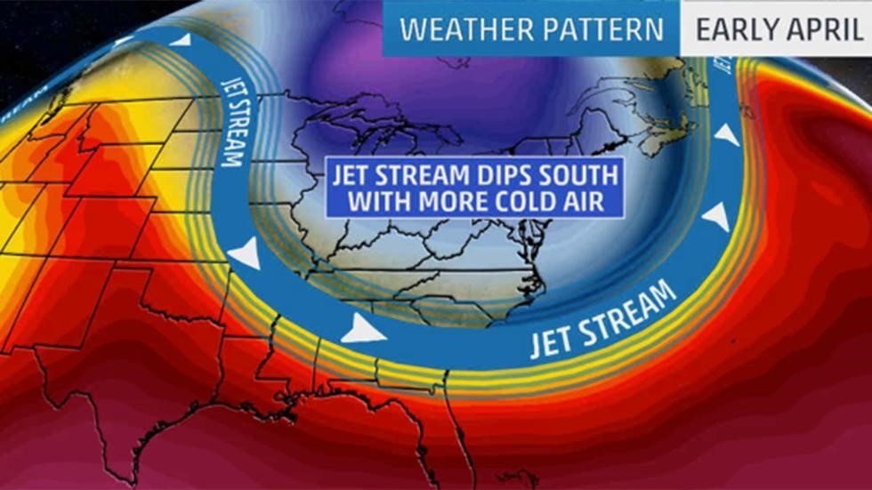 into at least mid-April. Meanwhile, lower in the atmosphere at jet-stream