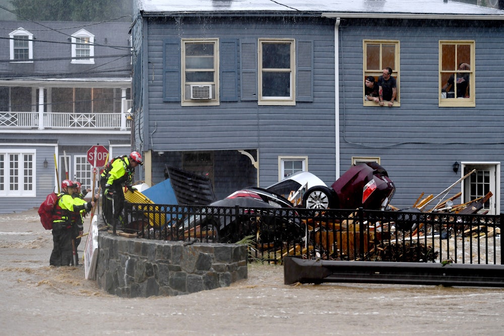 One contributing factor is the global rise in greenhouse gas emissions. Since the Industrial Revolution, humans have emitted about 535 billion metric tons of carbon dioxide. Those gases have increased the water vapor content of the atmosphere, thus making rainy areas like the Northeast more susceptible to severe rain. (The Northeast gets more precipitation than any other region in America.)